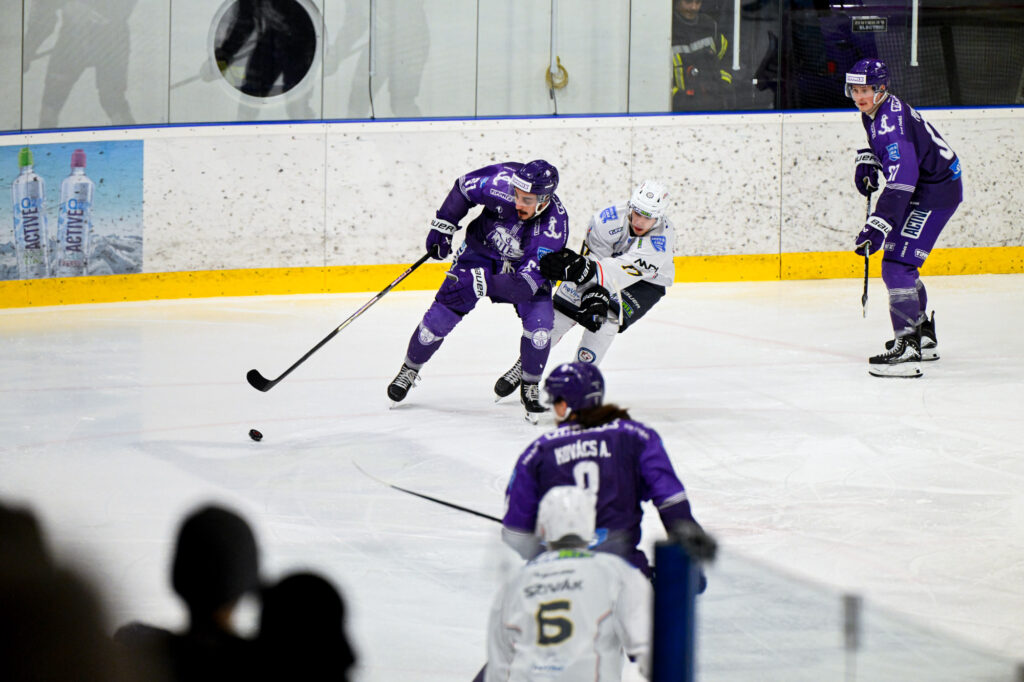 Az utolsó 20 percben aztán újra vezetést szereztek a vendégek: a mérkőzés 45. percében az exújpestiVarga Arnold lövését még kivédte Rajna Miki, a kipattanót kiszorított helyzetből Razumnyak szúrta rá, a középen érkező 18 éves Szivák Gergő volt a befejezőember. (1:2) Alig egy perc múlva egy potyagóllal egyenlítettünk; Luka Burzan nyesett alá, amibe még Szabó Dániel beleért, ezzel kötényt adva Farkas kapusnak, akinek a lábai között a gólvonal mögé csorgott a zsuga. (2:2) A következő percekben bemutatott egy-egy bravúrt Farkas és Rajna is, majd a záró 10 perc elején kihagytunk egy emberelőnyt. Aztán az 55. percben öt az öt ellen korábbi védőnk, Szabó Dániel betalált Rajnának. (2:3) Másfél perccel a vége előtt Rajna leült, majd fél perc múlva időt is kértünk, de nem sikerül egyenlíteni, így nyert a vendégcsapat, ezzel a párharc állása 2:1, az elődöntő pedig vasárnap folytatódik a BJA otthonában, a Vasas Jégcentrumban.
